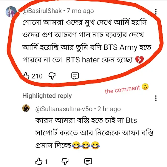 তো ওখানে এসে কিছু bts hater আপু আর ভাইয়া রিপ্লাই দিয়েছে ওদের কমেন্টের রিপ্লাই দিমু 😋
