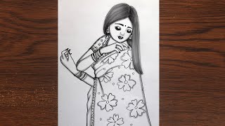 How to draw Traditional Girl Dancing || Pencil sketch for beginner || Girl drawing || Drawing sketch