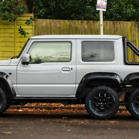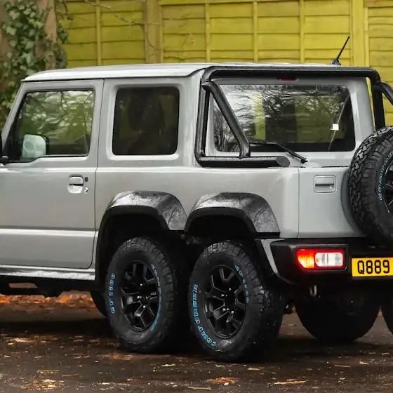 No, this is not an AI generated image. This is the Suzuki Jimny 6x4; a heavily modified version of the standard Suzuki Jimny, drawing inspiration from the Mercedes-AMG G63 6x6. Key features include: