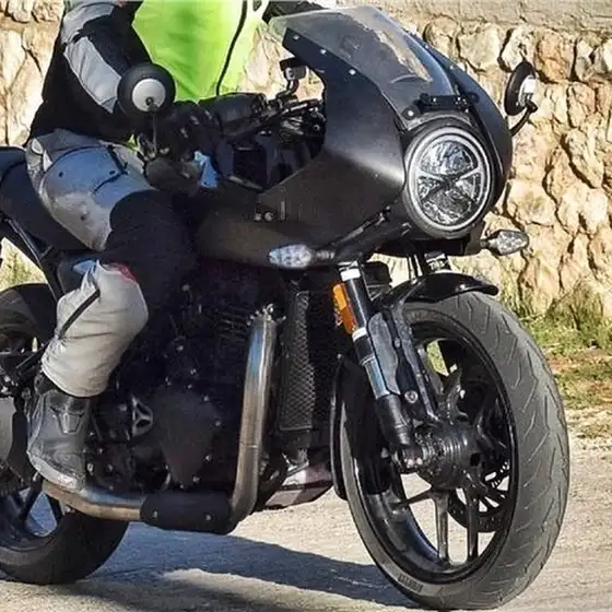 A new model based on the Triumph Speed 400 has been spied, bearing a clear resemblance to the larger Thruxton 1200. The bike features cafe racer styling, shared underpinnings with the Speed 400, and is expected to have similar performance figures. The test mule is seen rolling on Pirelli Rosso 3 rubber, and it is anticipated to make its public debut soon.