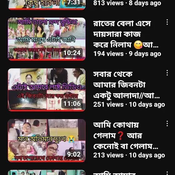 আসসালামু আলাইকুম আপু ভাইয়ারা কেমন আছেন খুবই খারাপ লাগলো সেজন্য এটা দিলাম যারা ইউটিউব সম্বন্ধে বোঝেন দেখেন তো এনার ভিডিও কি আমি ফুল ওয়াজ করেছি না কেটে কেটে দেখেছি কেন ইনি আমার পিছনে লেগে আছে আমি সত্যিই জানিনা কয়দিন পরে পরে আমাকে নিয়ে ভিডিও বানায় এনাকে আমি মায়ের মত জানি এবং জানবো কিন্তু সে আমাকে আপনাদের কাছে কেন ছোট করে হয়তো কোন কারনে আমার কমেন্ট শো করে নি তার ভিডিওতে এটাই আমার অপরাধ সে বলছে আমি নাকি তার ভিডিওর নিচ থেকে কমেন্ট কেটে নিয়ে আসছি যাই হোক একটা কথাই বলবো যারা আমাকে ভালবাসে তারা আমাকে ভালবেসেই থেকে যাবে কারো কথা শুনে আমাকে ভুল বুঝবে না ওমরা করে এসেছি ওপর আল্লাহর কাছে বলব মিথ্যা অপবাদ যে আমায় চাপিয়ে দিবে তার বিচার ওপর আল্লাহই করবে ভালো থাকবেন সবাই,,,