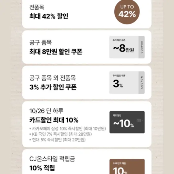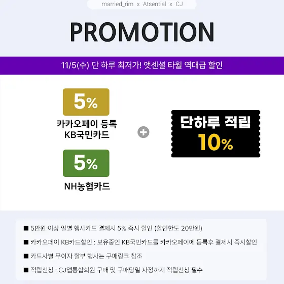 ⭕️ 카드할인 (최대 10%) : 일별 할인율 다름