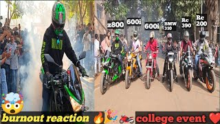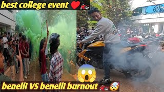 Best college event 🏍️ benelli vs benelli burnout 🔥college event mein burn out mara tyre faad Diya🤯🏍️