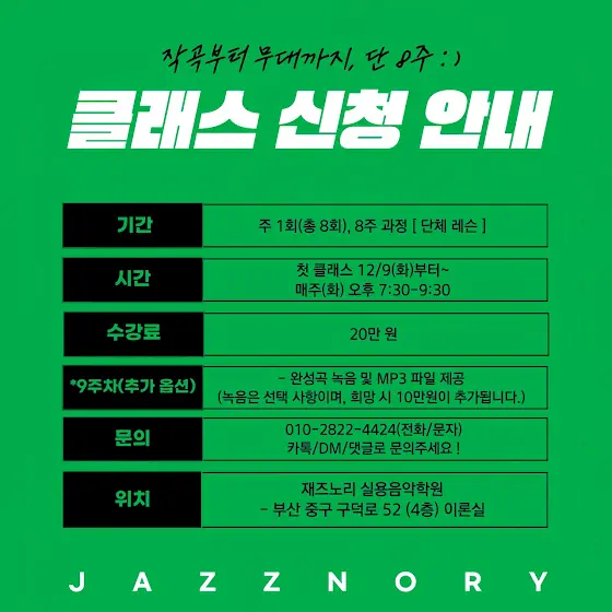 🗓️일시&장소 • 25.11.16(화) 오후 3시~6시 • 재즈노리 실용음악학원 - 부산 중구 구덕로 52 (4층) 이론실