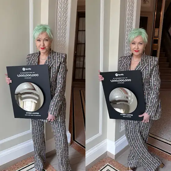 Playing catch up since getting off tour. Thank you everyone for helping me land another song in Spotify’s Billions Club! “Time After Time” joined “Girls Just Want to Have Fun” earlier this year. Thank you to @Spotify and all of our partners! I share this with you all. 😘