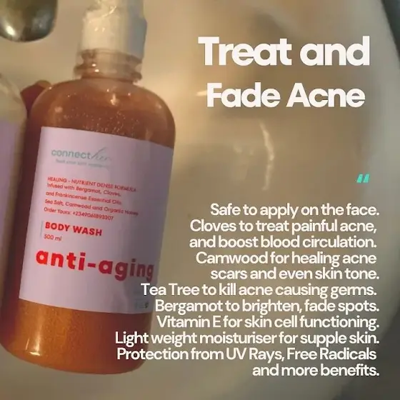 Last year, during my naturopathic and reproductive health training and research, I discovered the exciting connection among our skin, vital organs and menstrual health. This inspired me to produce the Connecther Anti-aging Body Wash. Our secret to rapid anti-aging is our robust antioxidant-nutrients dense formula.