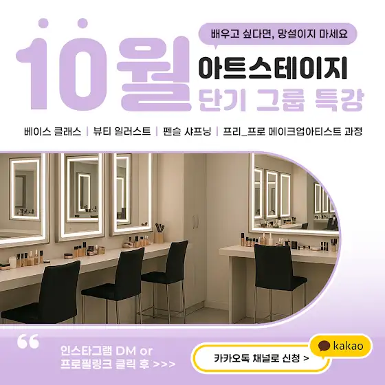 "확실한 메이크업 실무 교육을 원하시면, 아트스테이지1992 아카데미로 문의하세요💛
