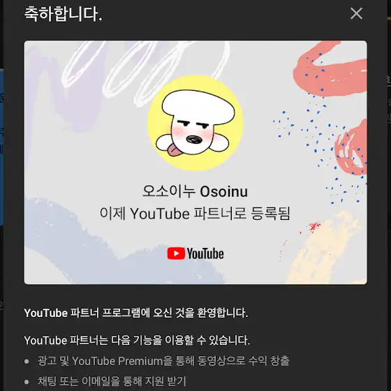 1. 채널 수익화하기로 했습니다.