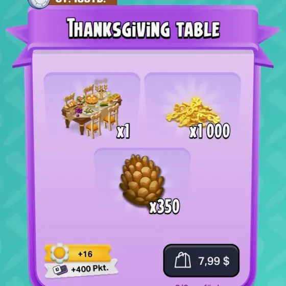 - mit einem Ingame- oder Onlinestoreangebot plus Thanksgivingtisch und Schlüssel für 9,99 Euro