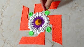 Attractive and simple Rangoli design of Shivling in lotus flower | lotus/Shivling Rangoli For shr...