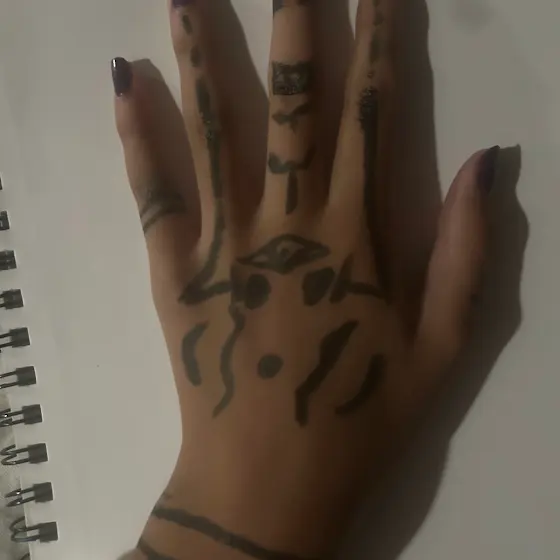 Me randomly drawing Sukunaโ€™s hand pattern on my hand (yes ik itโ€™s crappy looking but hey, I was bored, had a washable marker so like, yk)