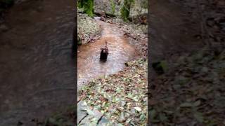 Dakota the Chocolate Lab in creek after storm