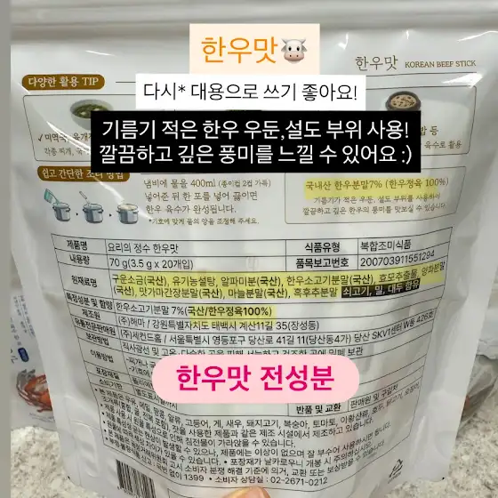 ✔️ 요리의 정수 신상맛(한우/멸치) 10명