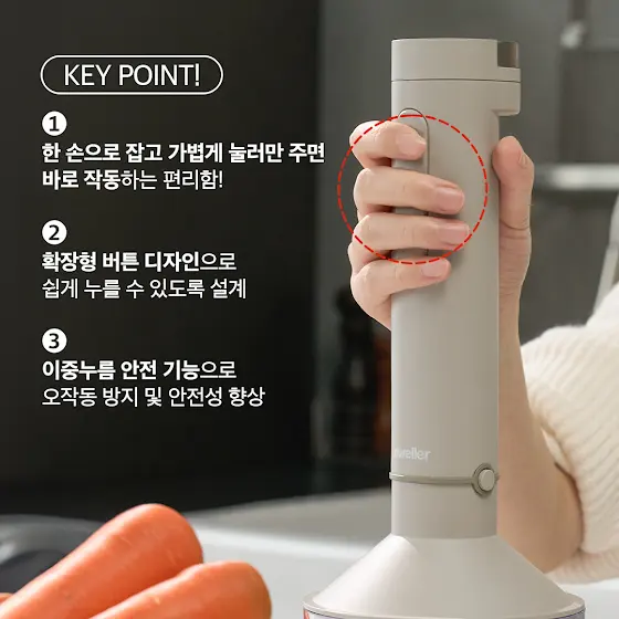 🔹드웰러 에어스틱 Check 뽀인뚜🔹 ✔ 200W 15000rpm 고성능 모터 ✔ 무선사용 편리함 + 1-6단계 섬세한 파워조절 ✔ 스텐304, 뜨거운 냄비 그대로 블렌딩 OK! ✔ 4in1 구성 (블렌더·초퍼·휘핑·세척솔) ✔ 강력함 + 600g 가벼움 동시에! ✔ C타입 2WAY 충전, 최대 103분, 3개월 거뜬! ✔ 칼날 바닥 미접촉 설계 → 고르게 블렌딩 ✔ 인체공학적인 설계로 버튼 한 손 조작 가능 ✔️ 이중 안전버튼으로 안심하고 사용가능 ✔ 무상 1년 AS