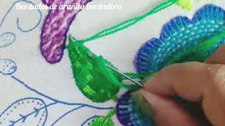 Paso a paso para bordar una hoja de pera o cualquier fruta o flor. Bordado para servilletas #puntada