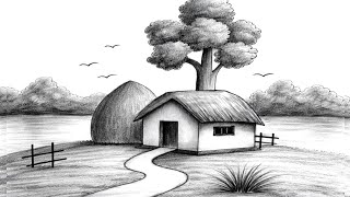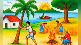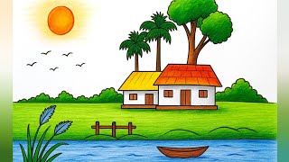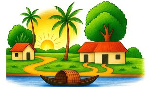 🎨 Scenery Drawing – Beautiful village landscapes, sunsets & nature