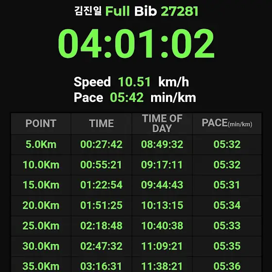 #서울마라톤 완주했습니다. 4시간 안에 들어오는 것을 목표로 열심히 뛰었으나, 1분2초 부족했습니다. 기록에 대 만족합니다. 한 번 더 도전하라는 뜻으로 알고 더 정진하여 3시간..대(sub4) 기록을 올해안에 세우려고 합니다. 정말 유쾌하고 감동적인 도전이었습니다.