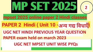 unit 10-अन्य गद्य विधाएँ ।UGC NET HINDI PREVIOUS YEAR QUESTION PAPER 2023 । paper 2 hindi mpset 2025