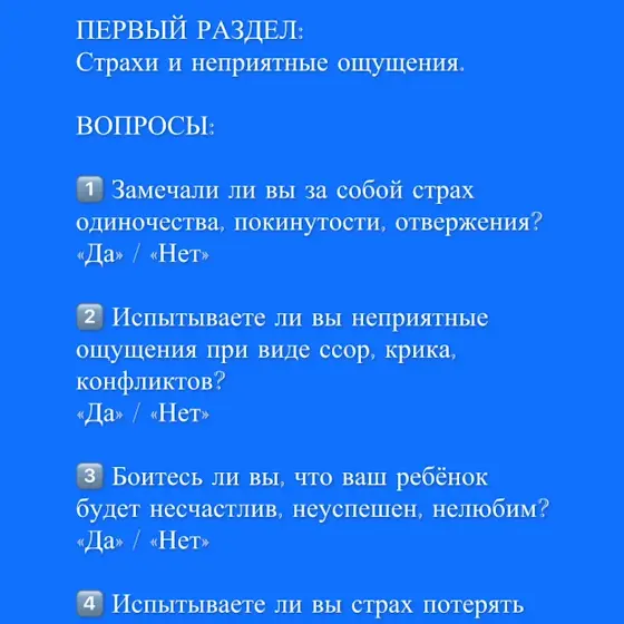 🟦 ТЕСТ для родителей «Детские травмы» ➡️ ПРОДОЛЖЕНИЕ ➡️ Листайте слайды и жмите на каждый (для полного открытия страницы). Начало в предыдущем сообщении ⬇️