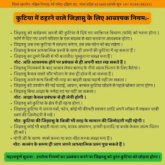 (अपनों की कुटिया) के आगंतुक जिज्ञासु के लिए नियम