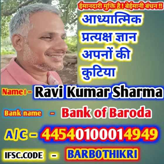 मैं योगी रवि पंडित शर्मा सत्य की खोज में, चेतना के रथ पर सवार आध्यात्मिक जगत की खाक छान रहा हूं। अब तक अपना जीवन इसी मार्ग पर खपाया है तथा मेरा संकल्प हे की मैं, मानवता के कल्याण के लिए `सत्य` तक पहुंचकर ही विश्राम करूंगा। मेरे ह्रदय में मानव मात्र के लिए असीम करुणा है और मैं मानव कल्याण के ही पथ का पथिक हूं। मेरी आकांक्षा है कि जहा तक मेरी दृष्टि जाए, कोई मनुष्य दुखी ना हो। हर व्यक्ति सुखी हो, स्वस्थ एवम निरोगी हो, इसी उद्देश्य हेतु मैने अपना जीवन समर्पित किया है। अंततः मेरा प्रयास तथा मेरी शक्ति मानव समाज के लिए हो, इसी आकांक्षा के साथ मै प्रस्तुत हूं = जैसी मां की इच्छा।