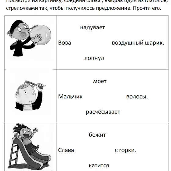 3) файл "составь предложение" где вам нужно будет выбрать правильный глагол для предложения