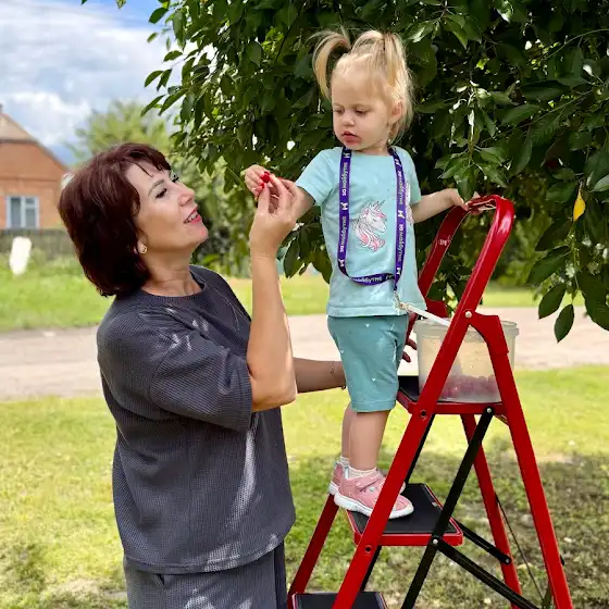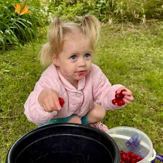Сашуня мій головний помічник! Така старанна, всюди за мною. Навіть на драбину хотіла лізти, аби дістати вишеньку з самого верху 😄