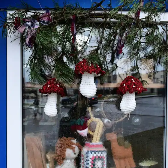 Довязала, развесила на мастерской. Довольная✨️#декор #мухоморы #вязаныйдекор #мухоморкрючком