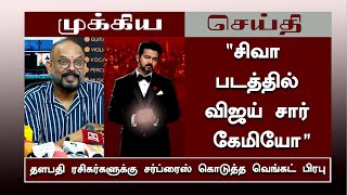 "சிவா படத்தில் விஜய் சார் கேமியோ" தளபதி ரசிகர்களுக்கு சர்ப்ரைஸ் கொடுத்த வெங்கட் பிரபு - VenkatPrabhu