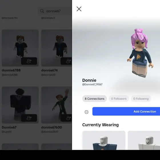 Her username is Donnie67_19067 she also has motl576, which also roasted me