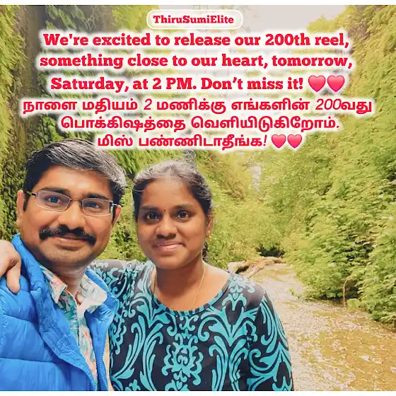 All our concepts are originally thought, written, edited, and directed by both of us togetherβthe duo Thirumurugan (Thiru) and Sumathi (Sumi).