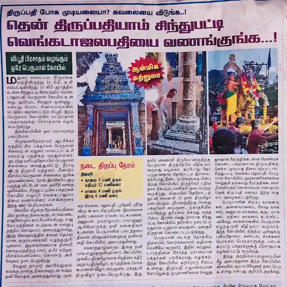 சிந்துபட்டி ஸ்ரீ தென்திருப்பதி வெங்கடாஜலபதி திருக்கோயில்...