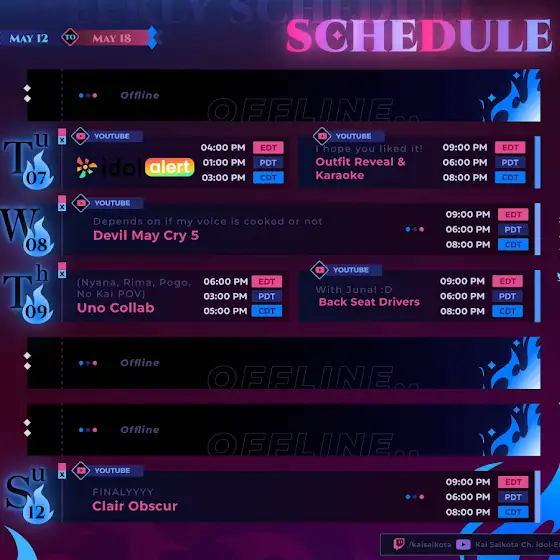 Schedule for May 12 - May 18🐲☁️