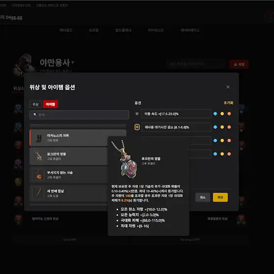 디포지지 업데이트* 옵션 및 담금질을 직접입력 할 수 있습니다* 빠진 아이템, 옵션등 업데이트 되었습니다* 등록된 모든빌드를 볼 수 있는 빌드리스트 메뉴가 추가 되었습니다* 최근 일주일간 조회수가 높은 빌드 10개리스트가 보입니다감사합니다.!