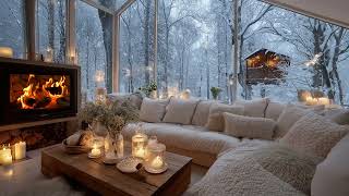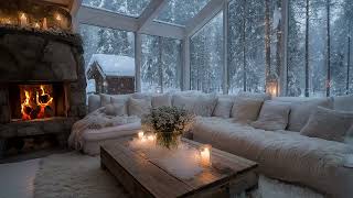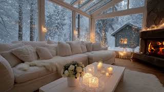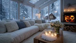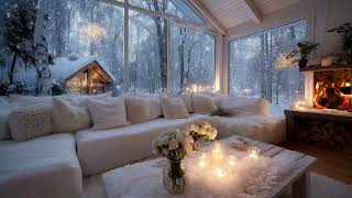 🎹❄️White Lounge Snow Piano | Warm Fireplace Winter Ambience for 3 Hours | Calm Mind Study Meditation