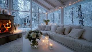 ❄️Winter Cozy Piano | White Floral Lounge & Fireplace for 3 Hours | Sleep Relaxation Study Work Calm