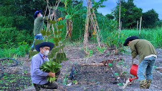 Man’s Solo Survival: Lush Organic Garden, Spinach & Morning Glory Vegetables, Weeding & Fish Feeding