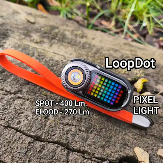 LoopGear LoopDot Matrix Pixel Taschenlampe mit warmweissen Flutlicht, kaltweissen Spotlicht und unzähligen Funktionen und Einstellungsmöglichkeiten.