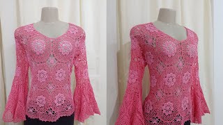 Rita's Blouse Checkered Pattern #crochetsquare #crochetlesson #crochetstepbystep #square #round #...