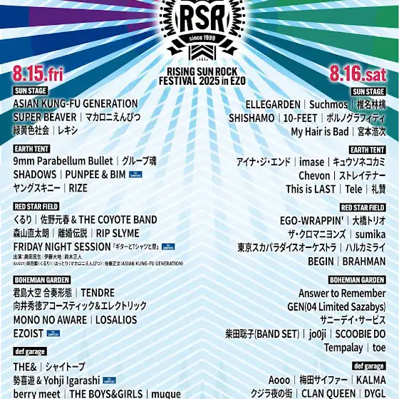 8/15(金)“RISING SUN ROCK FESTIVAL”@北海道石狩樽川ふ頭特設ステージ(EARTH TENT・for CAMPERS)に、PUNPEE & BIMが出演いたします。是非お越しください。