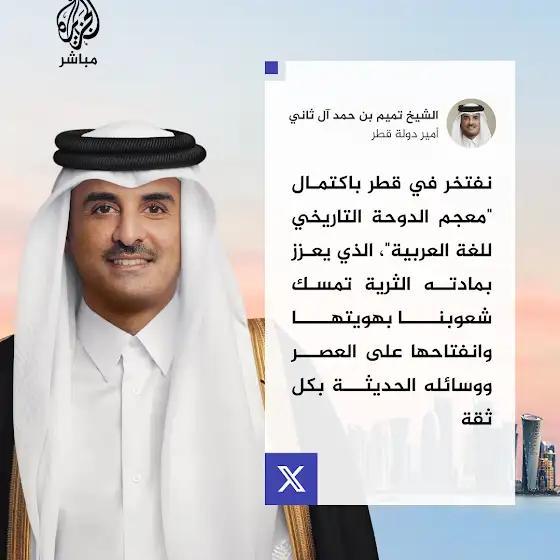 أمير دولة #قطر الشيخ تميم بن حمد آل ثاني: معجم #الدوحة التاريخي للغة العربية يعزز تمسك شعوبنا بهويتها #الجزيرة_مباشر