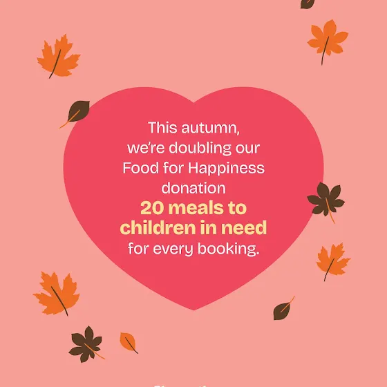 โจ Book this autumn and weโll DOUBLE our Food for Happiness donationโ20 meals for every booking! โก๏ธ bit.ly/42j6OPf