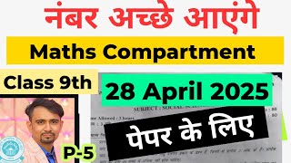 Maths imp question class 9 for compartment exam 2025 / P2 / class 9th math compartment paper 2025 ka