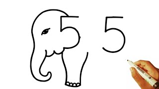 How To Draw Elephant From 55 Number l Elephant Drawing Ideas l Online Drawing l Number Drawing l Art