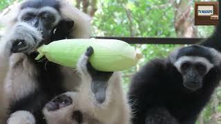 Laly is hugging her mother, she seems to be short of milk, Lovely baby gibbon β€οΈπ§Έπππ