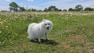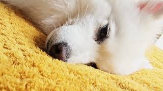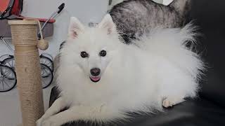 Incredibly beautiful white puppy, dog Japanese Spitz Sandy. This breed is very friendly, affectionate, a true friend and companion. The dog is always smiling, her smile is crazy. Lovely videos about a dog, as well as cats with which she lives. I recommend this breed to everyone) Thank you for watching, stay with us, because it is very cute and calm immediately becomes in the soul.