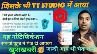 Yt studio new notification 🥳 l easily edit videos with youtube create what does it mean? Creatorr...