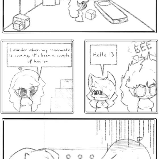 Here’s just a small page of what it looks like! For now, the storyline begins as Georgie finishes settling her stuff into the new apartment as she was waiting for her new roommate. (the reason why she has a roommate is because split costs and share responsibilities) She was wondering when her roommate was coming until Fidèle just appeared and greeted her with a smug expression, causing her to startled. Georgie turned around and faced her, as the room goes silent, then Georgie asked who she is, Fidèle introduced herself and told her that she’s her roommate!