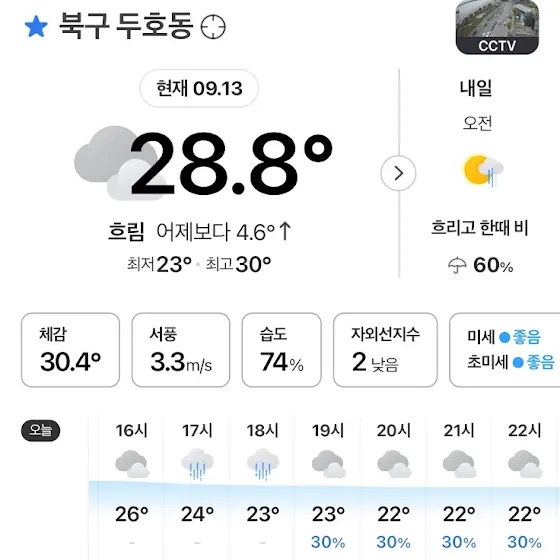 오늘은 여름이 다시 가을을 훔치려는 날씨네요