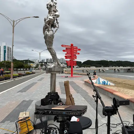 오후에 일정을 마치고 영일대에서 라이브 방송을 죤비중에